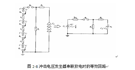 沖擊電壓發生器要滿足兩個要求:首先要能輸出幾十萬伏到幾百萬伏的電壓,同時這電壓要具有一定波形。沖擊電壓發生器它是用下列馬克斯回路來達到這些目的的,如圖2-7:
